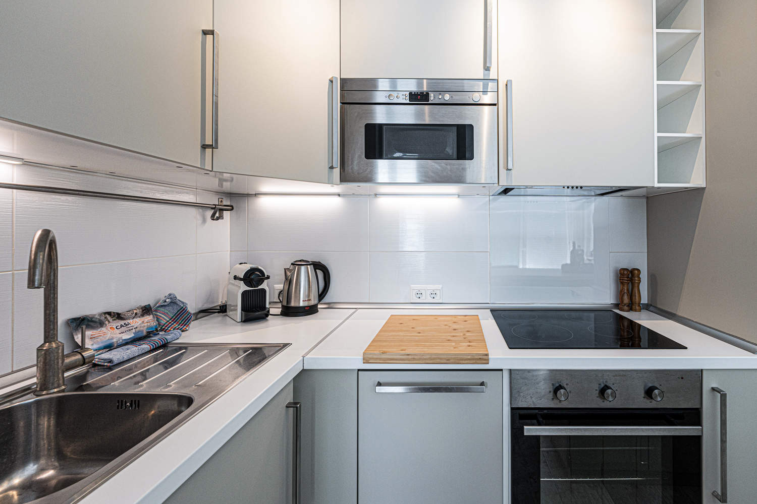 Comodità: L'appartamento dispone di WiFi ad alta velocità, aria condizionata, cucina aperta completamente attrezzata con elettrodomestici di qualità, macchina da caffè Nespresso, bollitore elettrico, tostapane e stoviglie complete. Include aspirapolvere Dyson e asciugacapelli per un soggiorno più confortevole.