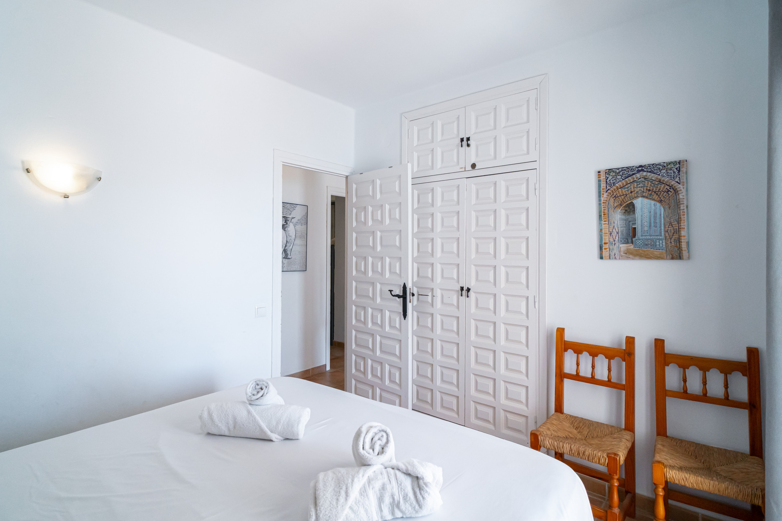 - Camera da letto principale: dispone di un comodo letto matrimoniale, armadi a muro e accesso diretto alla terrazza attraverso ampie porte finestre. Svegliatevi con la vista sul mare e l'atmosfera tranquilla di Capistrano Playa.