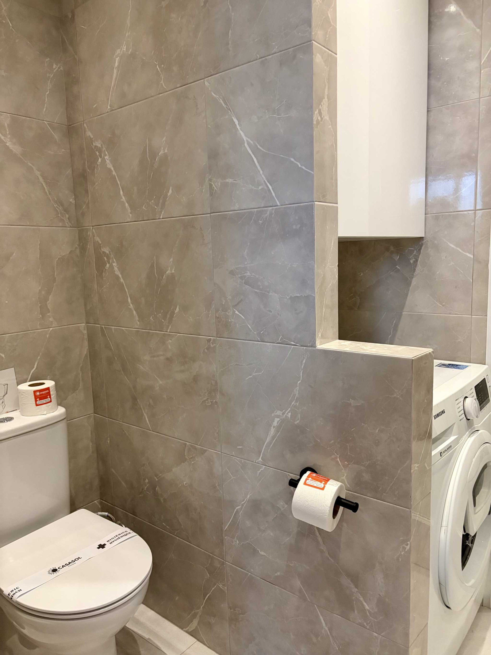 - Bagno privato nella seconda camera da letto con doccia, WC e lavatrice.