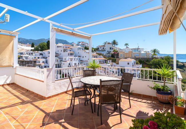 Questo elegante e luminoso appartamento con due camere da letto combina l'eleganza mediterranea, i comfort moderni e il carattere tradizionale andaluso, ideale per coppie o famiglie in cerca di una vacanza indimenticabile e tranquilla a Nerja. Il punto forte della proprietà è la sua spettacolare terrazza privata di 30 m², dove potrete godere di una vista panoramica sulla spiaggia di Burriana, sul mare blu e sul lago ornamentale circondato da case bianche. Che si tratti di gustare la colazione al sole del mattino o un bicchiere di vino al tramonto, questo spazio diventerà il vostro angolo preferito.