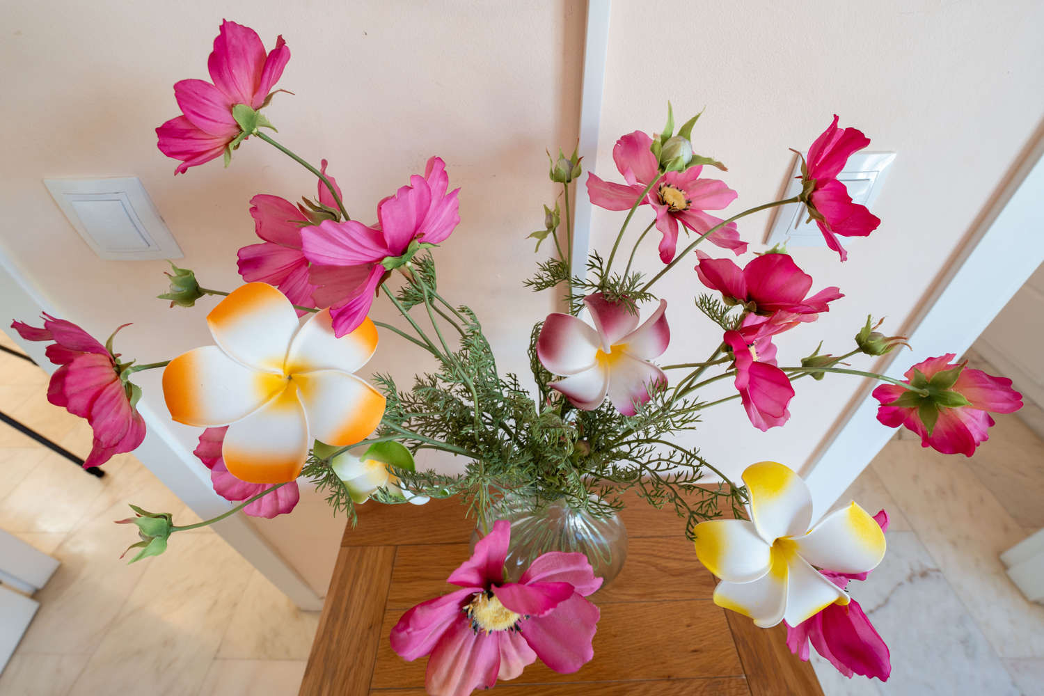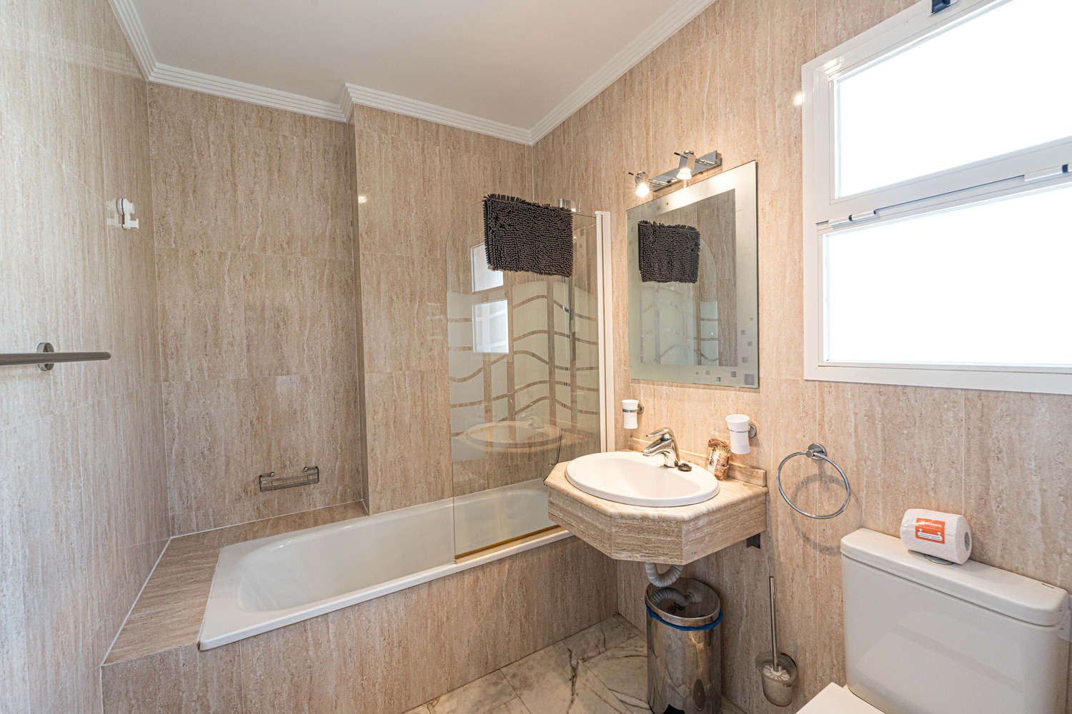 La proprietà si distingue per una distribuzione intelligente che separa la zona notte dalla zona giorno con soli otto gradini. Dispone di due camere da letto: la principale con letto king size e bagno en suite, e una seconda camera con due letti singoli, entrambe con materassi di alta qualità per garantire il riposo. La cucina indipendente è ampia e completamente attrezzata per soggiorni di lunga durata, completata da un bagno principale con vasca. L'aria condizionata centralizzata in tutto l'alloggio assicura una temperatura perfetta per dormire comodamente anche nelle giornate più calde.Terrazze private con barbecue e luce naturale