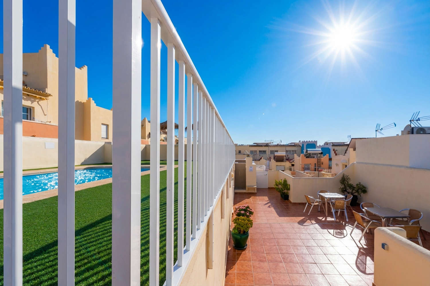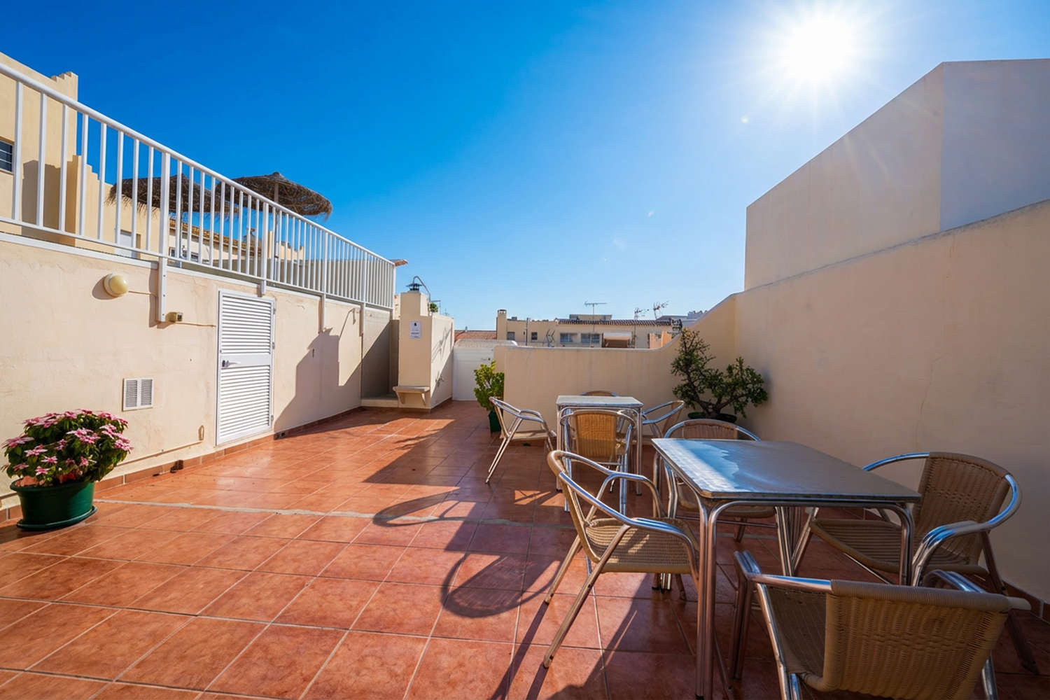 L'interno è stato rinnovato per offrire un ambiente ordinato e tecnologico. Nel soggiorno avrete a disposizione una TV con 190 canali internazionali, mentre la camera da letto principale, con il suo ampio letto matrimoniale, nasconde un dettaglio molto apprezzato: una scrivania privata con lampada. Grazie al Wi-Fi in fibra ad alta velocità, questo angolo è perfetto per gestire commissioni veloci o per soggiorni di media durata, unendo il riposo alla totale connettività.Urbanizzazione andalusa con piscina sul tetto