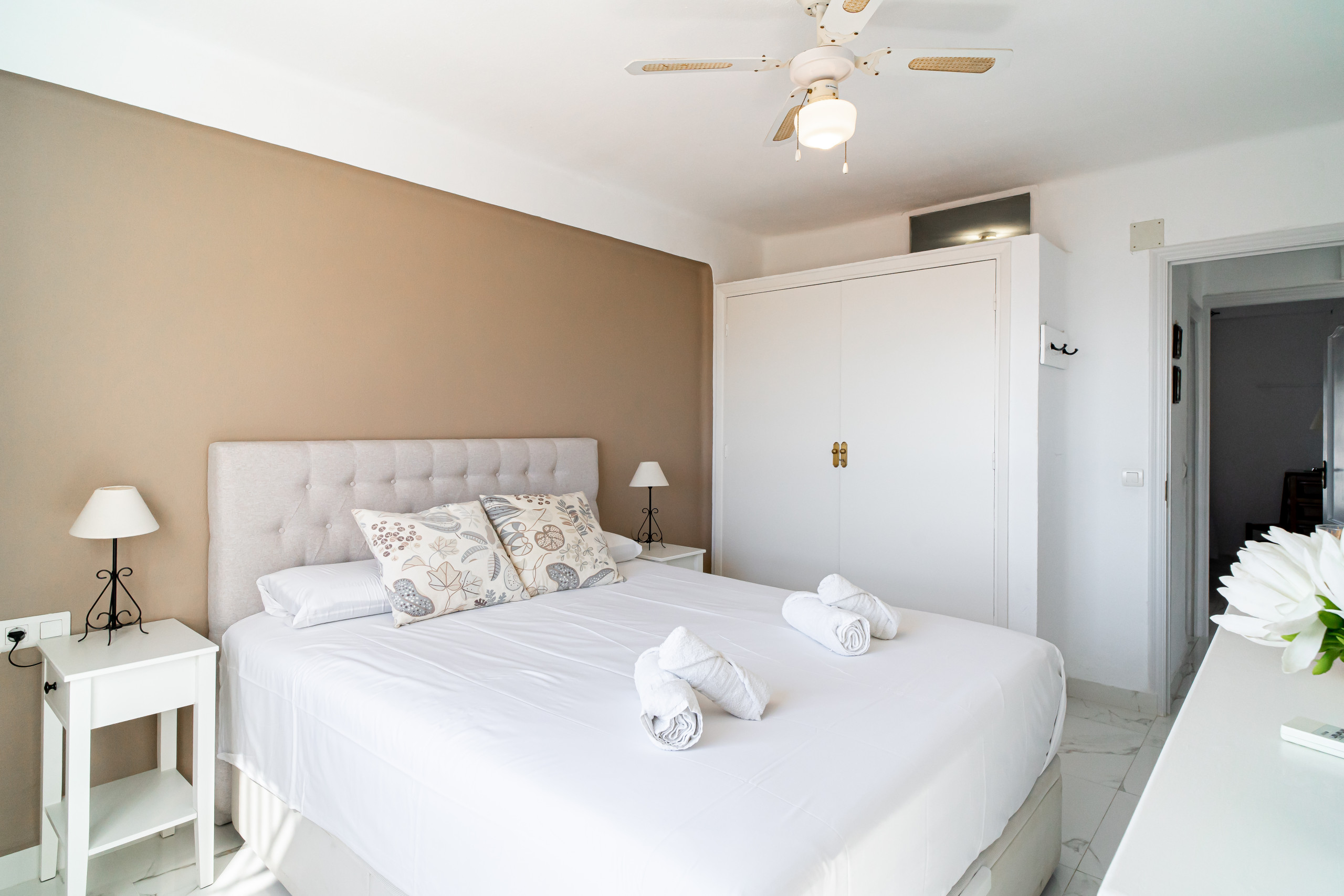 Entrambe le camere da letto dispongono di comodi letti matrimoniali e di un ampio spazio per riporre gli oggetti, rendendo il nostro appartamento la scelta ideale per coppie e famiglie. Faccia un tuffo nella nostra piscina comunitaria, che è aperta tutto l'anno e rappresenta il luogo perfetto per rilassarsi e distendersi.