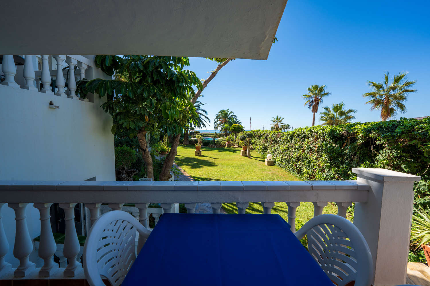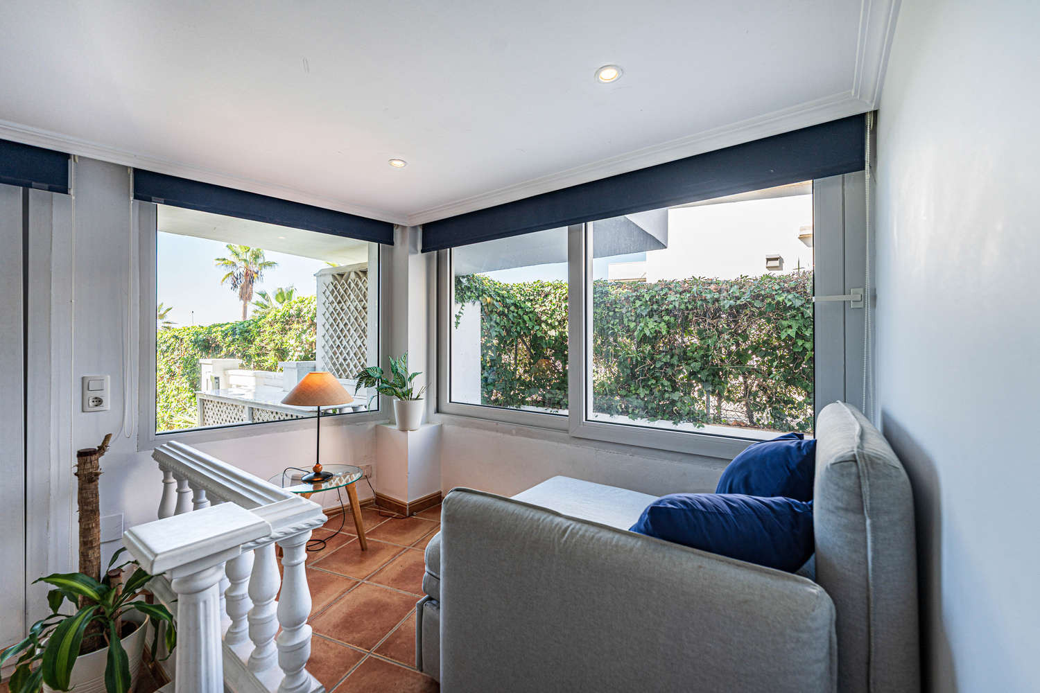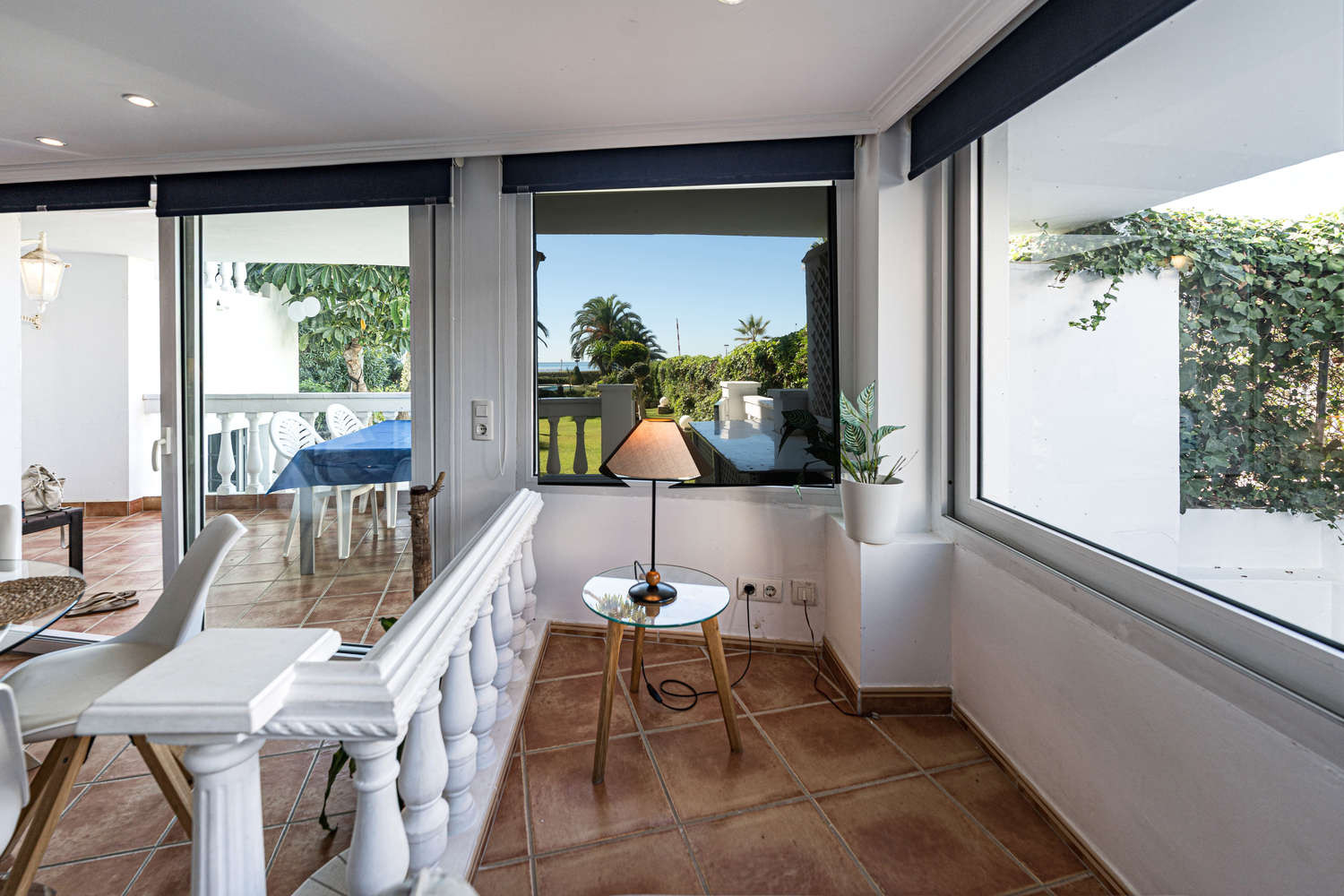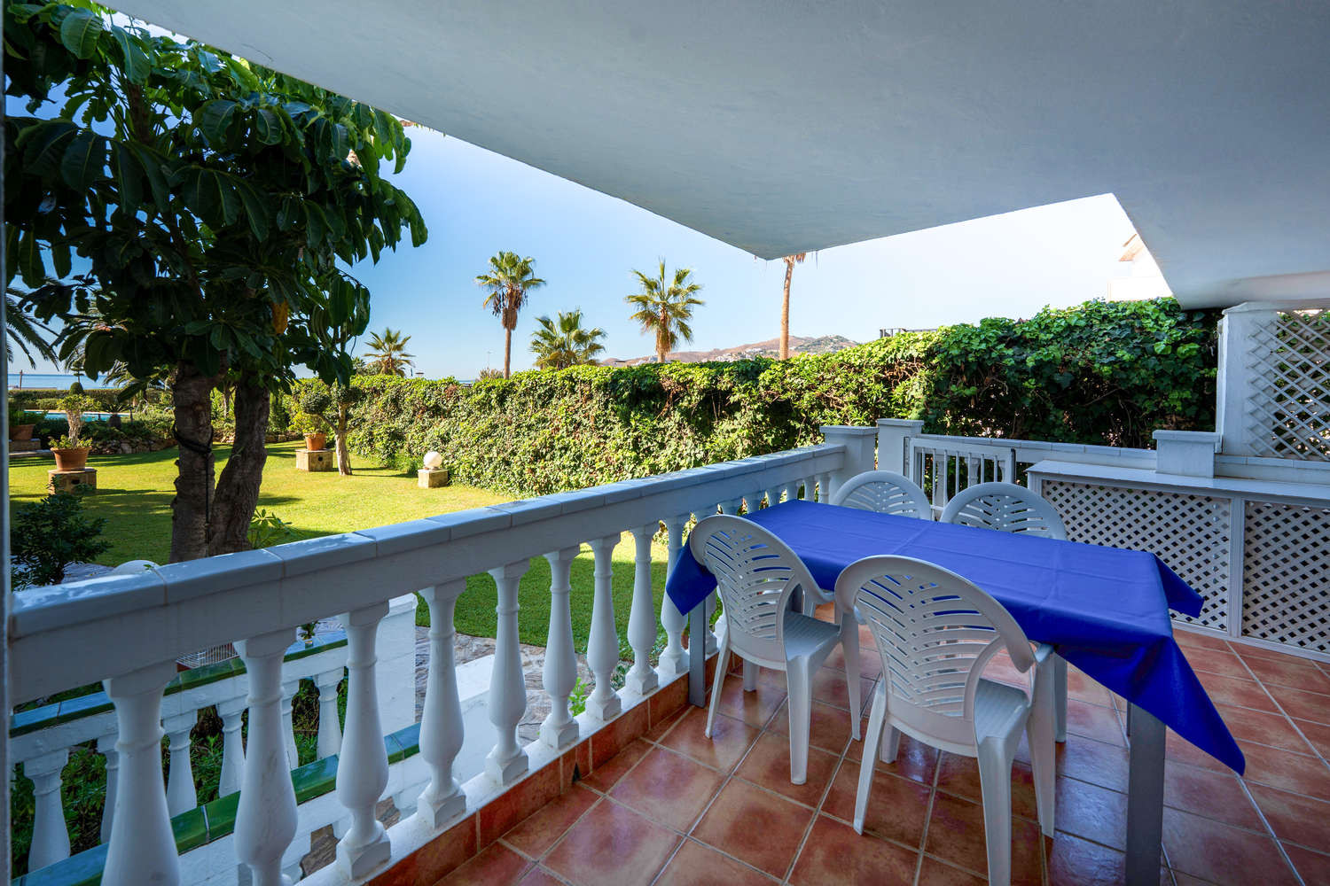 La terrazza privata è un'estensione naturale della casa. Con accesso diretto esclusivo al giardino comune e alla piscina, permette di godersi il clima di Nerja in completa libertà. È possibile fare colazione con vista sul mare ed essere in piscina in pochi secondi, sfruttando al massimo la vita all'aria aperta in questo appartamento fronte mare con piscina a Nerja.