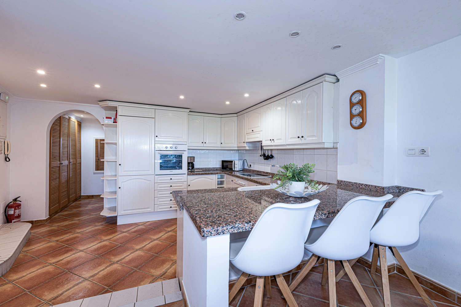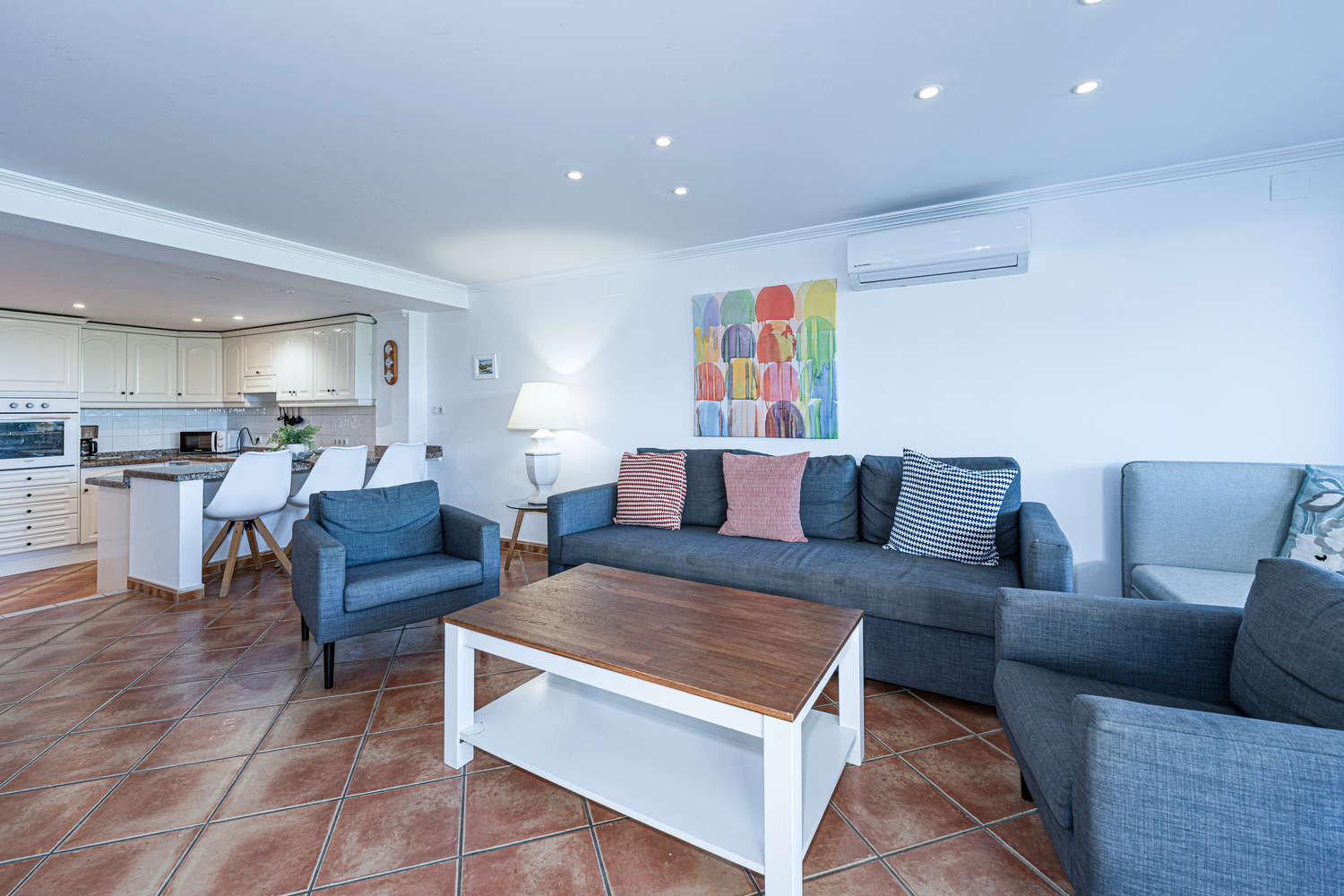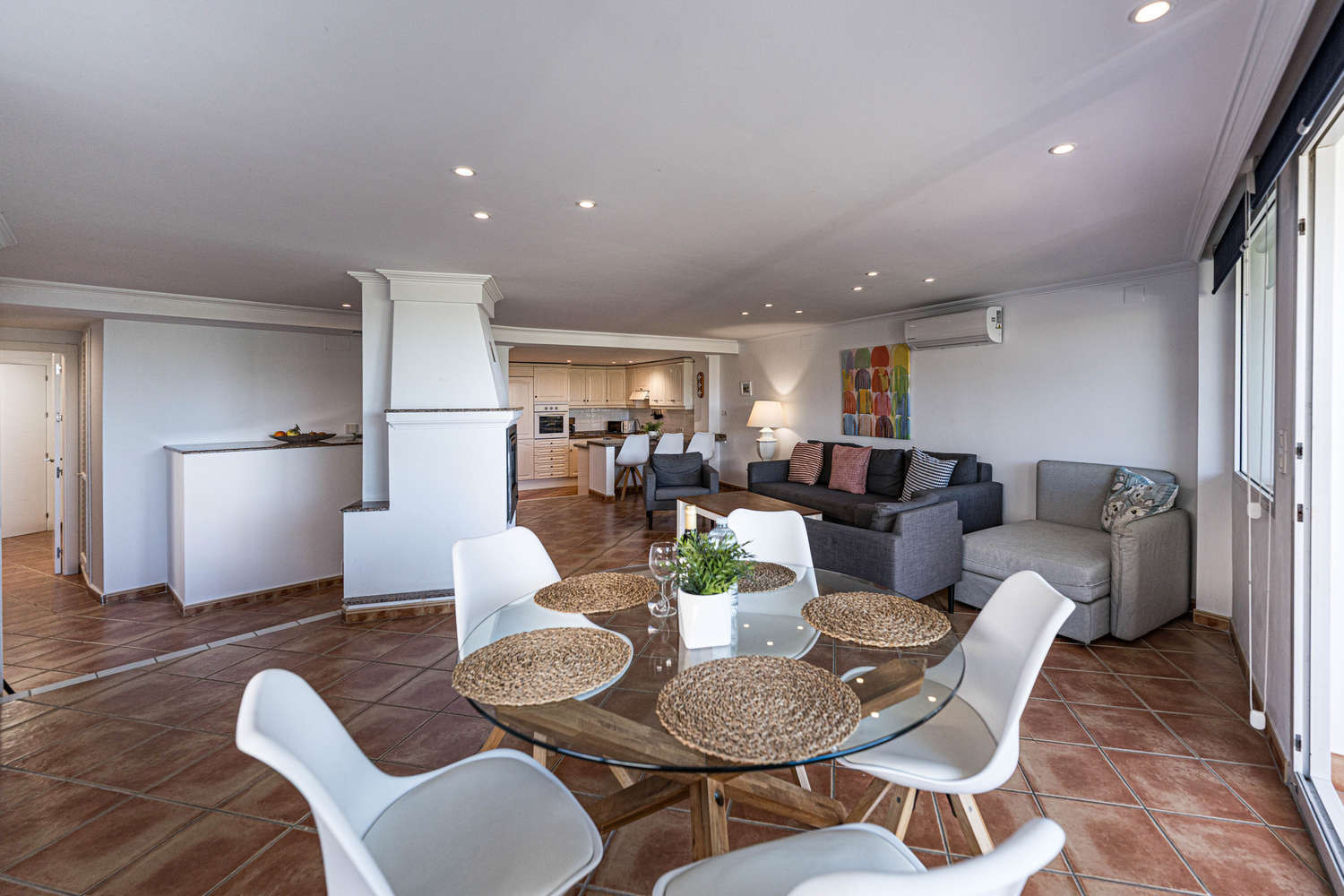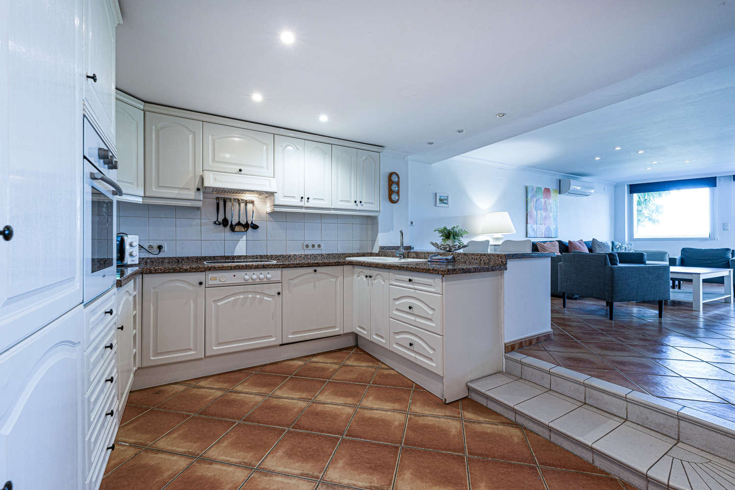 Un ampio appartamento di 120 m² al piano terra, progettato per offrire una reale sensazione di spaziosità. Dispone di un ampio soggiorno-sala da pranzo, una cucina separata completamente attrezzata e 2 camere da letto. I 2 bagni completi garantiscono il comfort e la privacy necessari per le famiglie o due coppie che condividono una vacanza a Nerja.