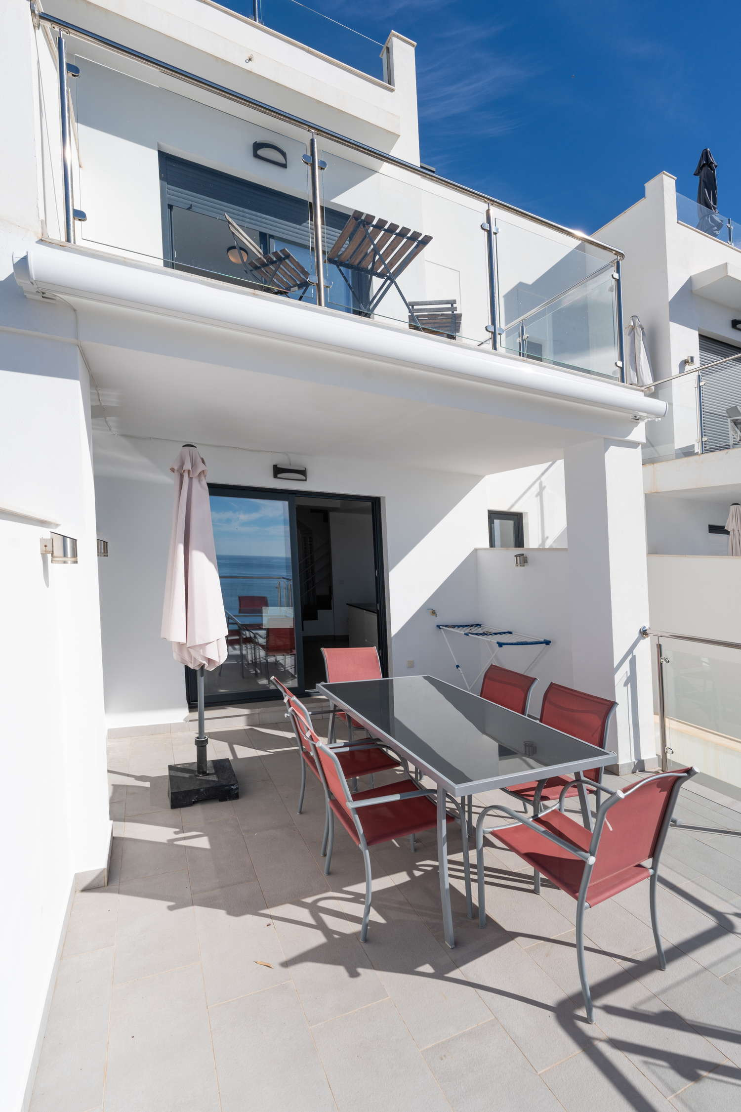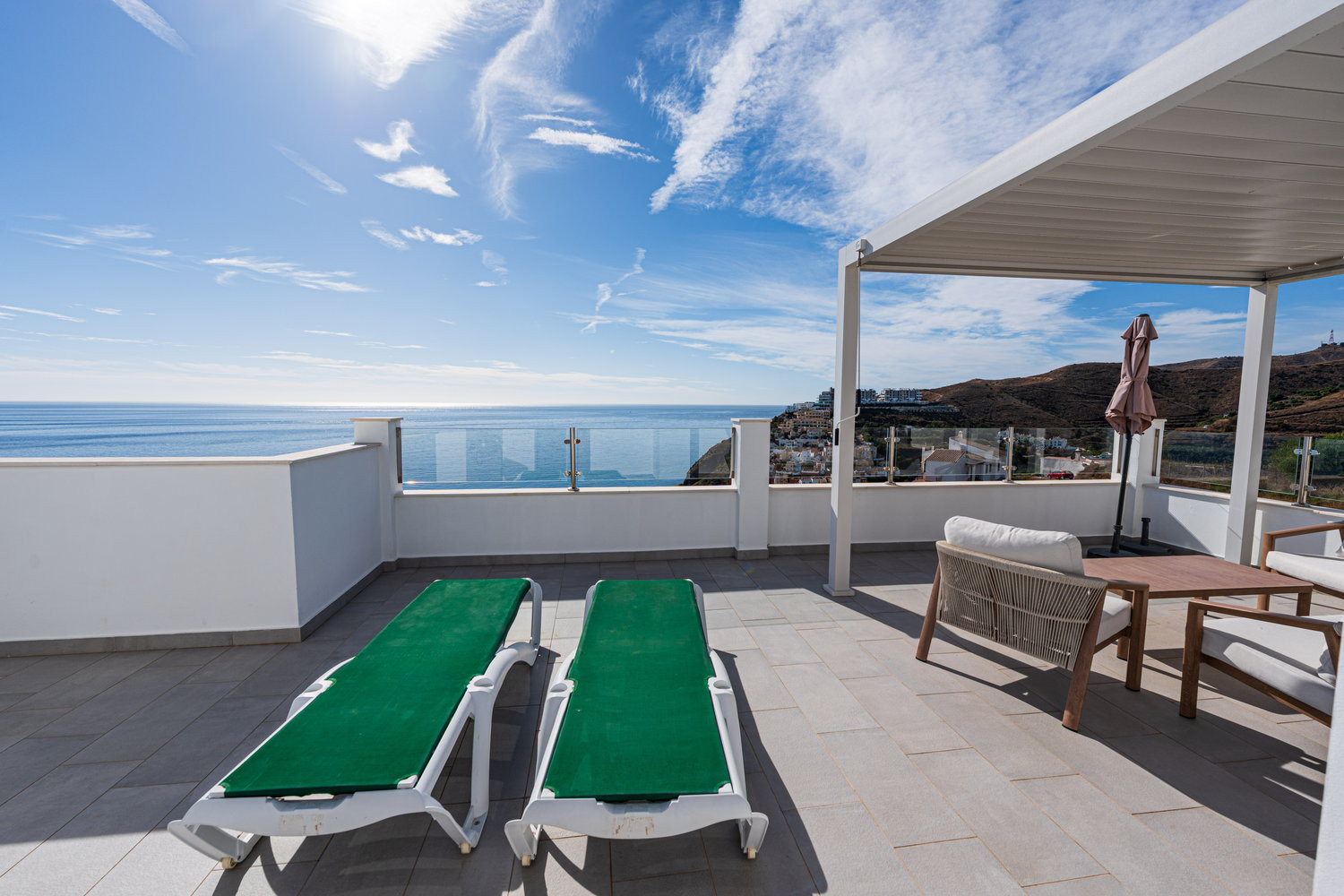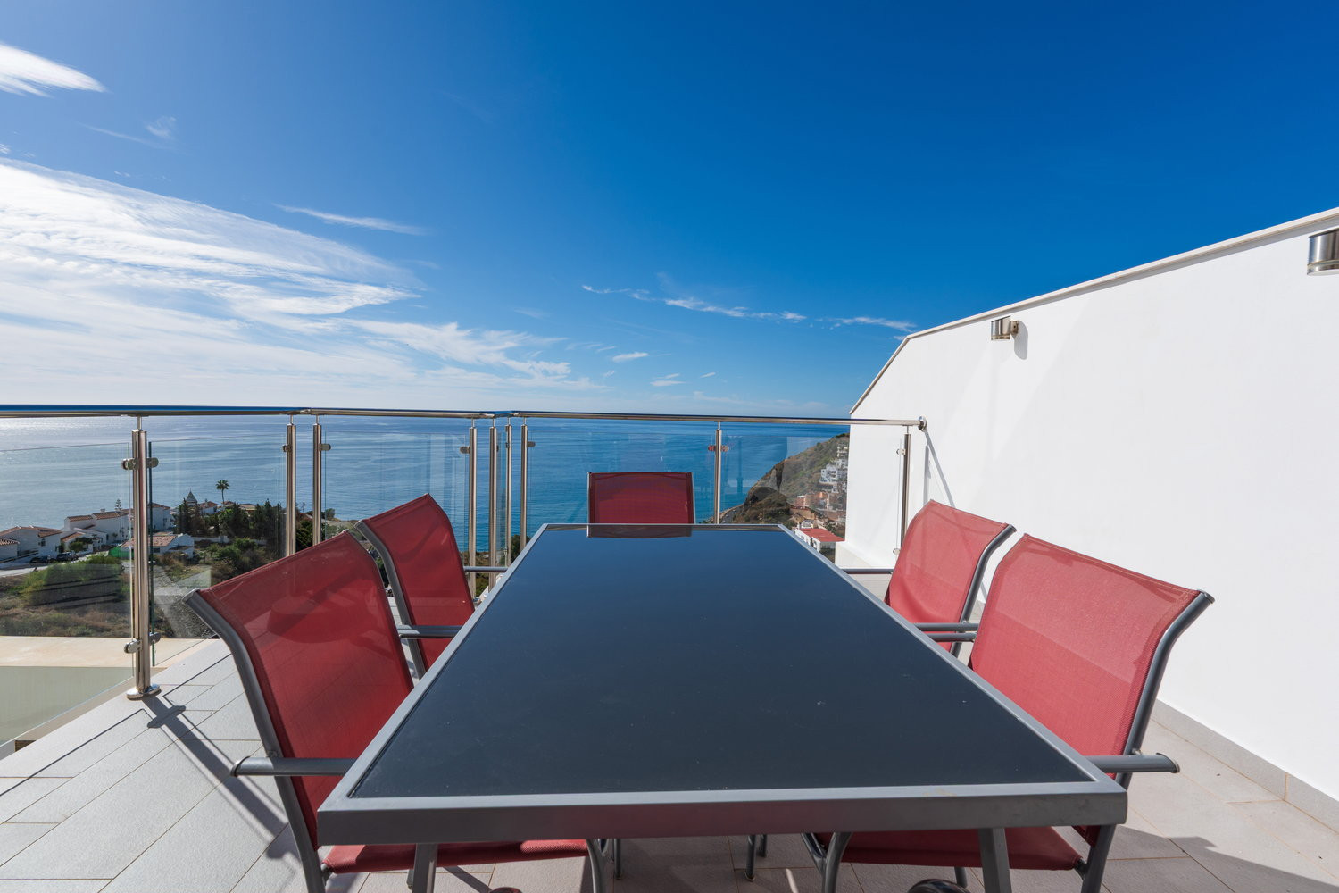 Ma il vero gioiello di questa proprietà sono le sue tre terrazze mozzafiato con viste mozzafiato sul mare e sole infinito - in particolare quella magnifica con vista panoramica.