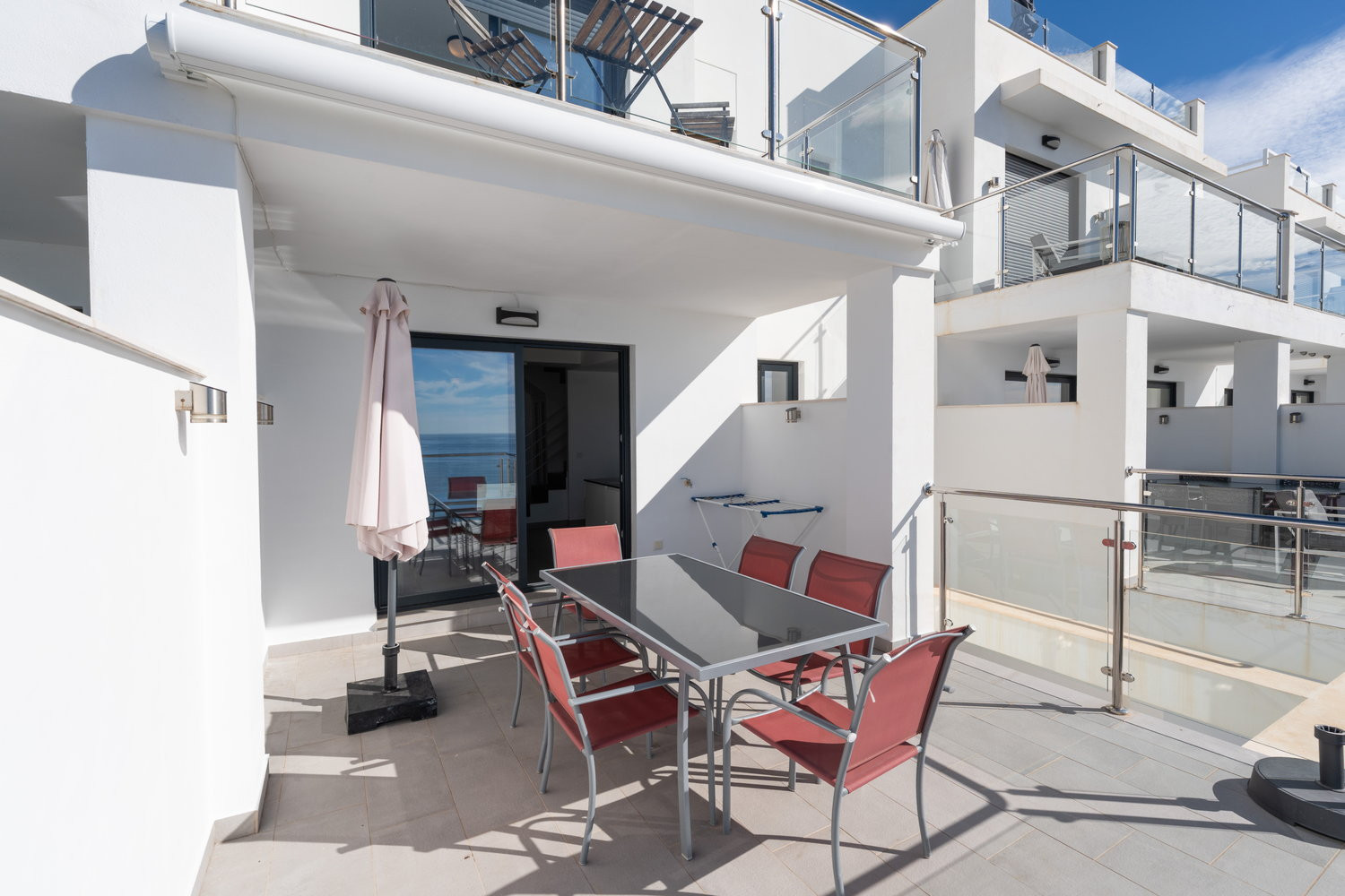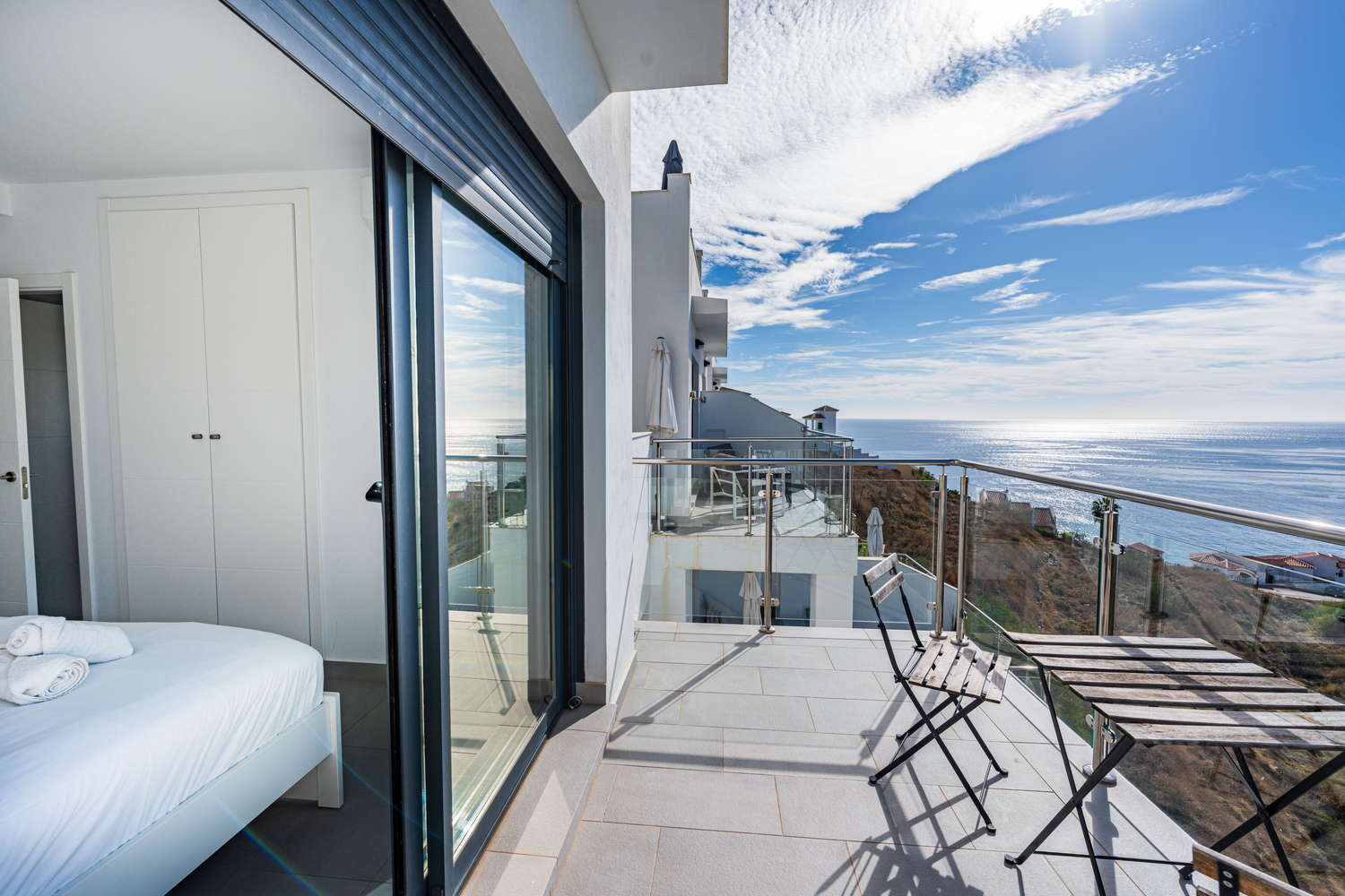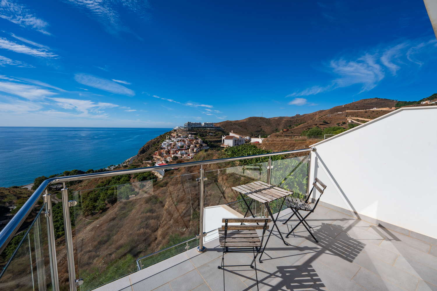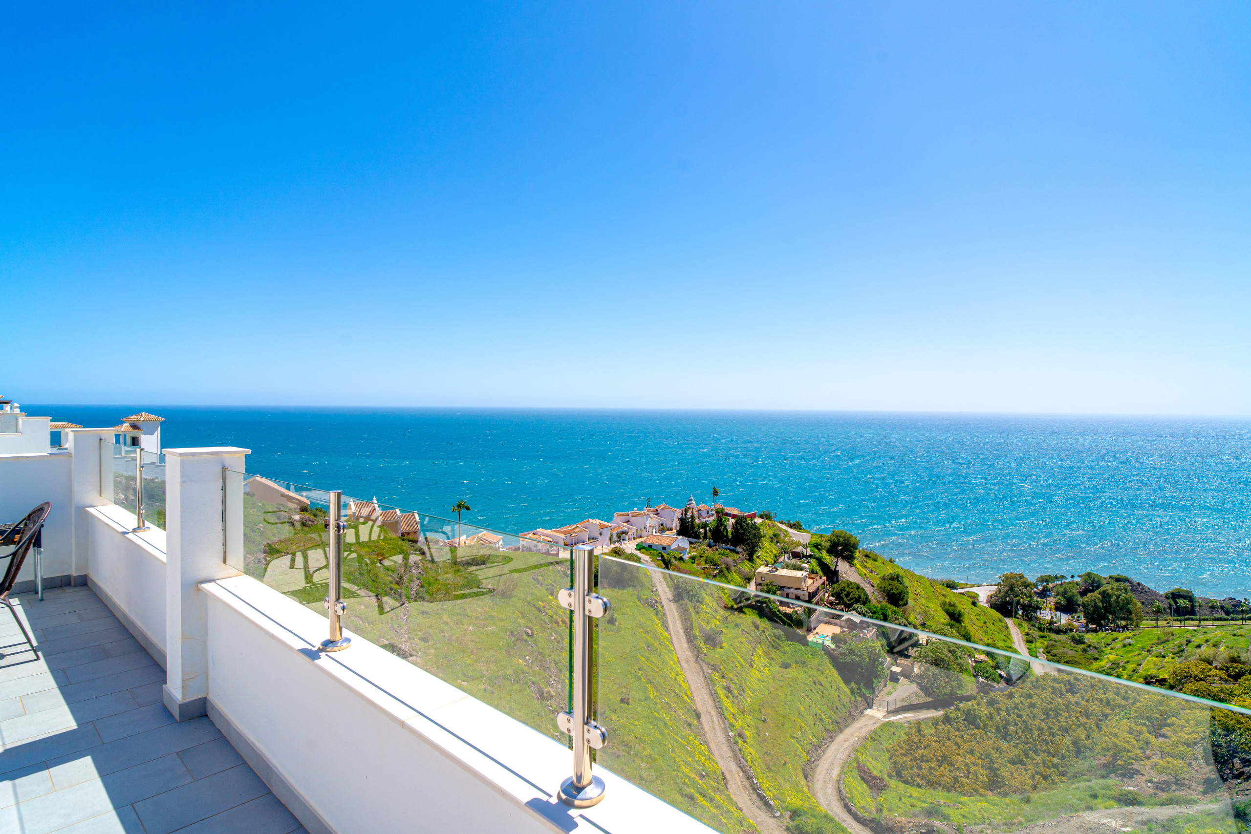Ma il vero gioiello di questa proprietà sono le sue tre terrazze mozzafiato con viste mozzafiato sul mare e sole infinito - in particolare quella magnifica con vista panoramica.