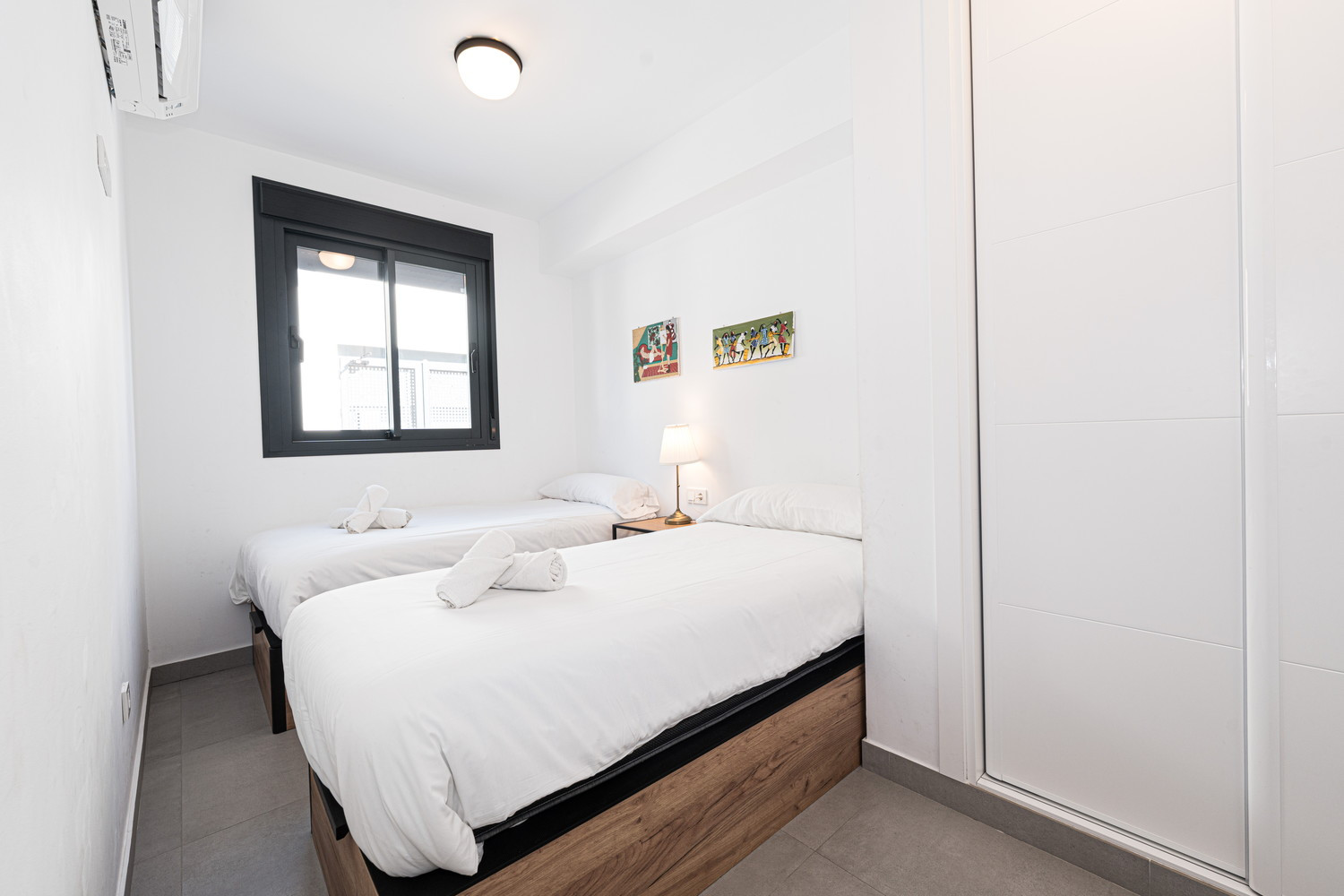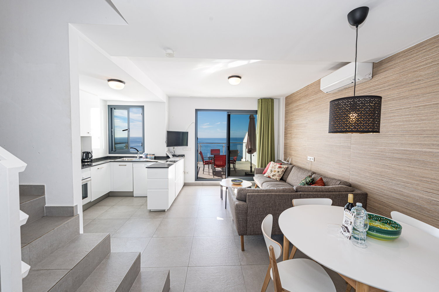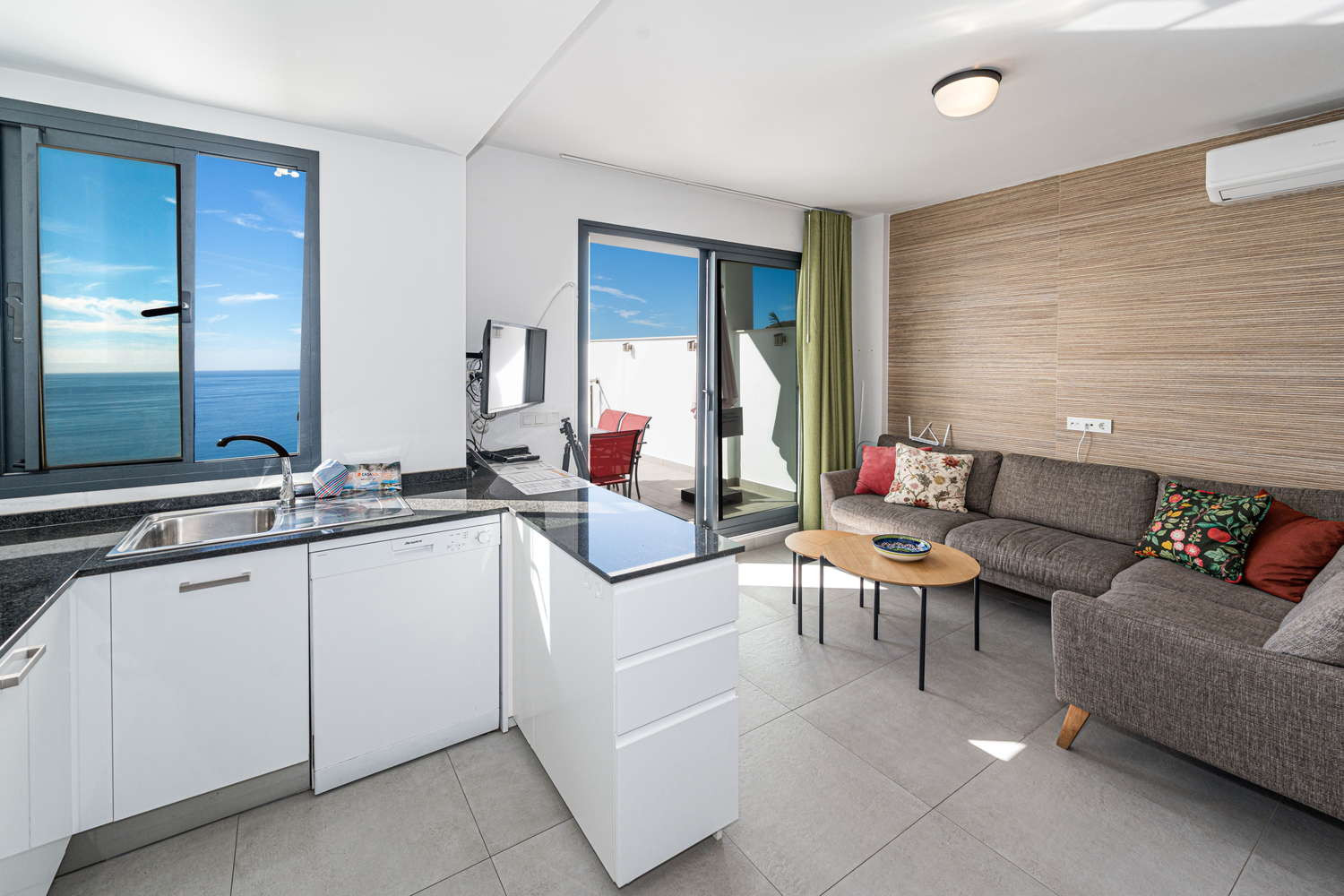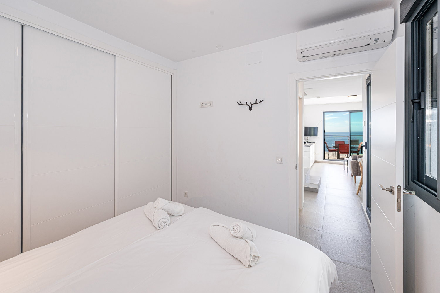 Beautiful modern apartment, it was spotlessly clean when we arrived , very well equipt with dishwasher ,coffee machine, washing machine, the bed we slept in was so comfortable…we had the best sleep ever , it was so lovely to wake up to a sea view every morning , only one bedroom has the sea view ( so get in quick ) .