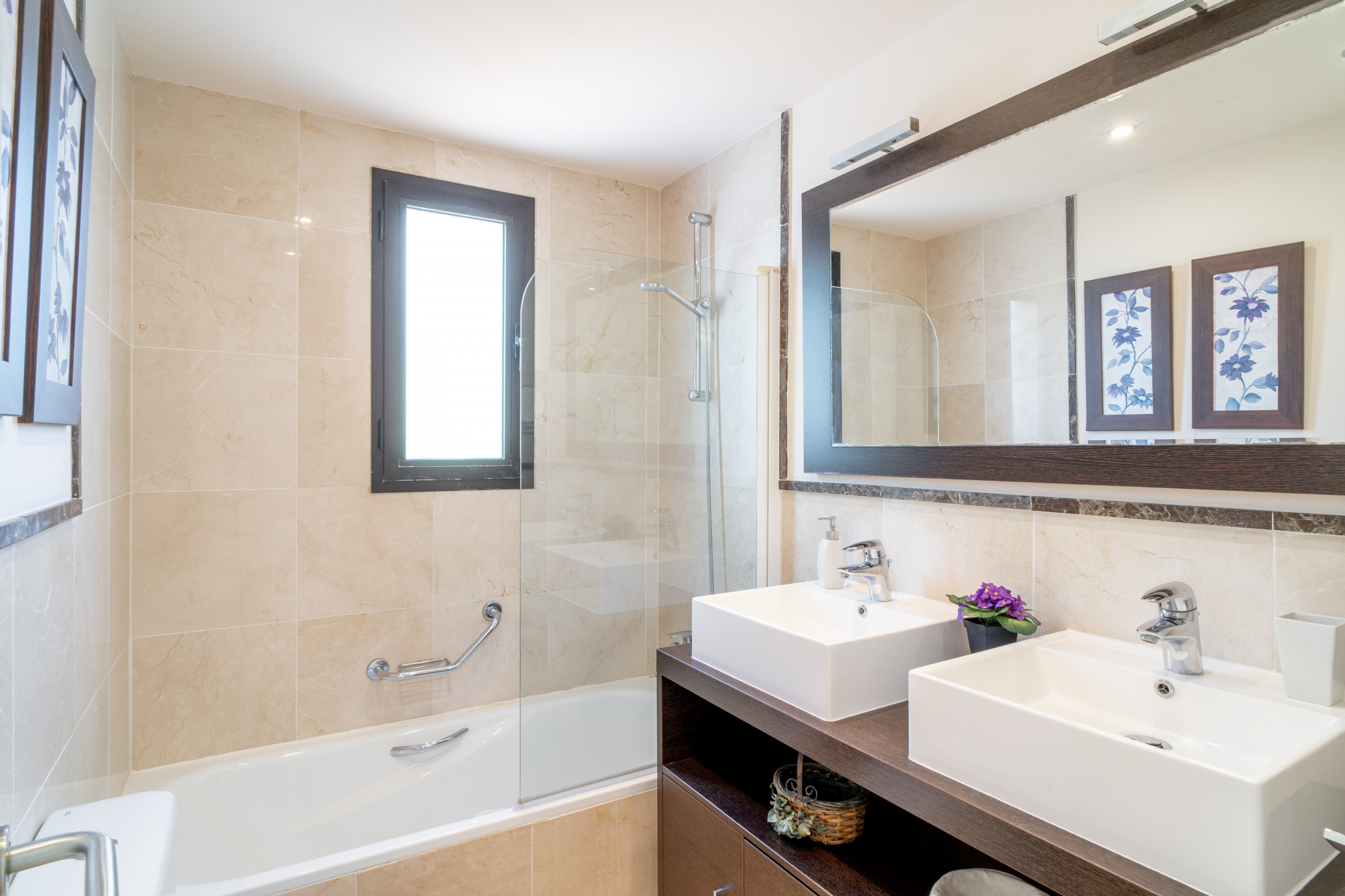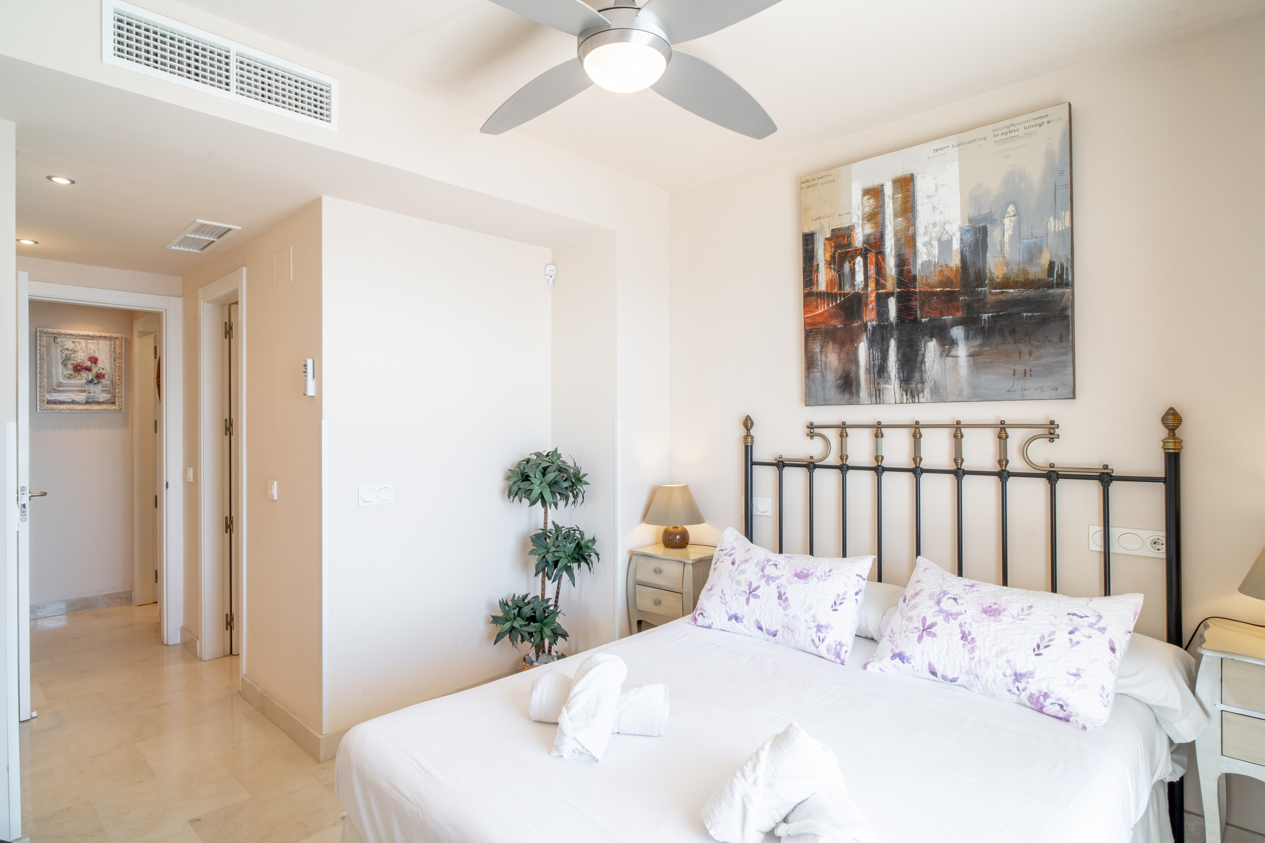 L'appartamento dispone di 2 camere da letto, una delle quali con letto matrimoniale e bagno privato e l'altra con due letti singoli. Dispone inoltre di una cucina completamente attrezzata con elettrodomestici all'avanguardia e aria condizionata centralizzata.