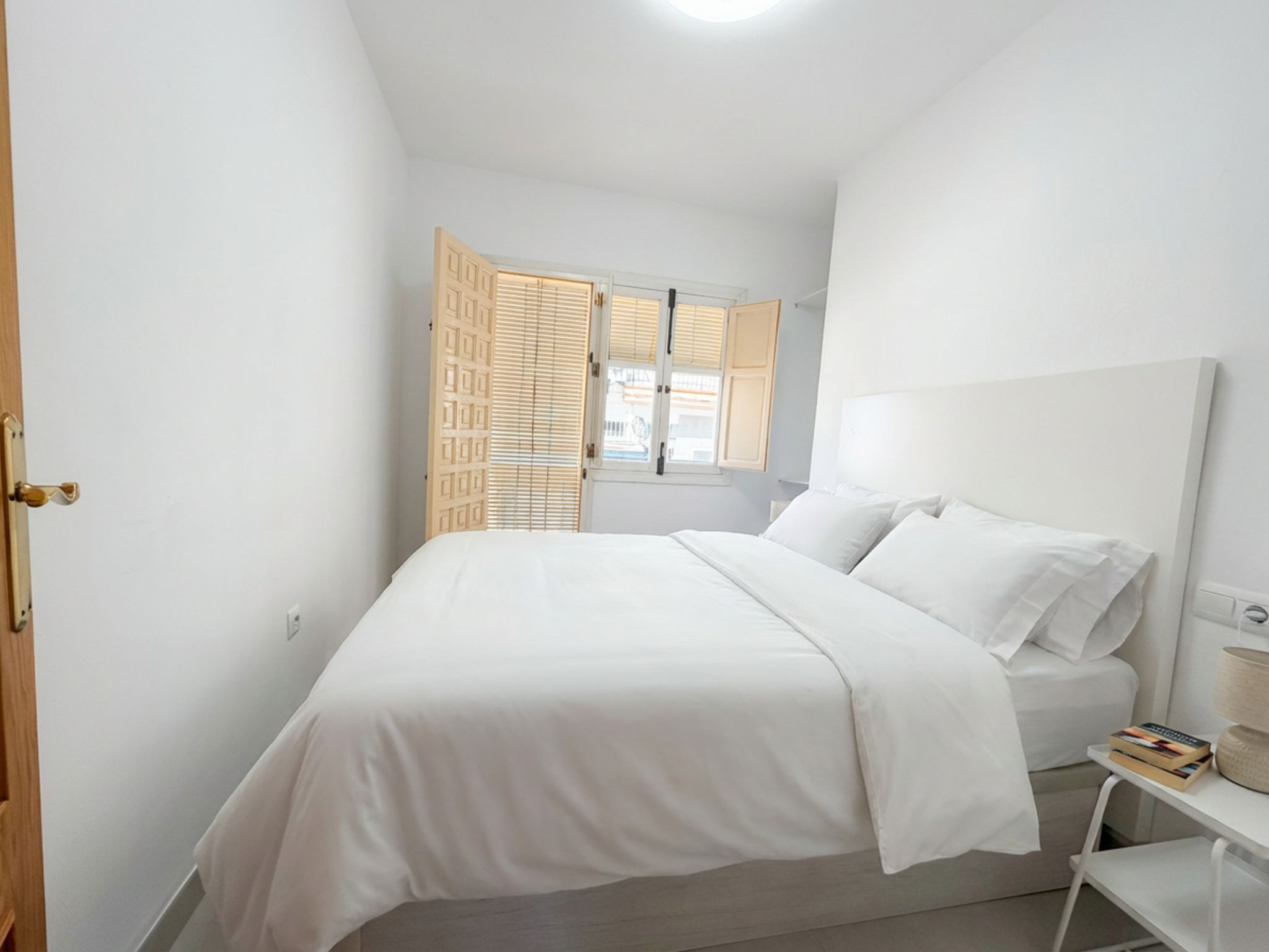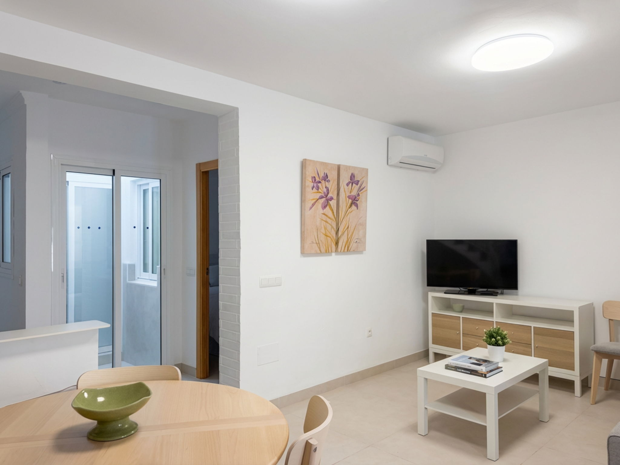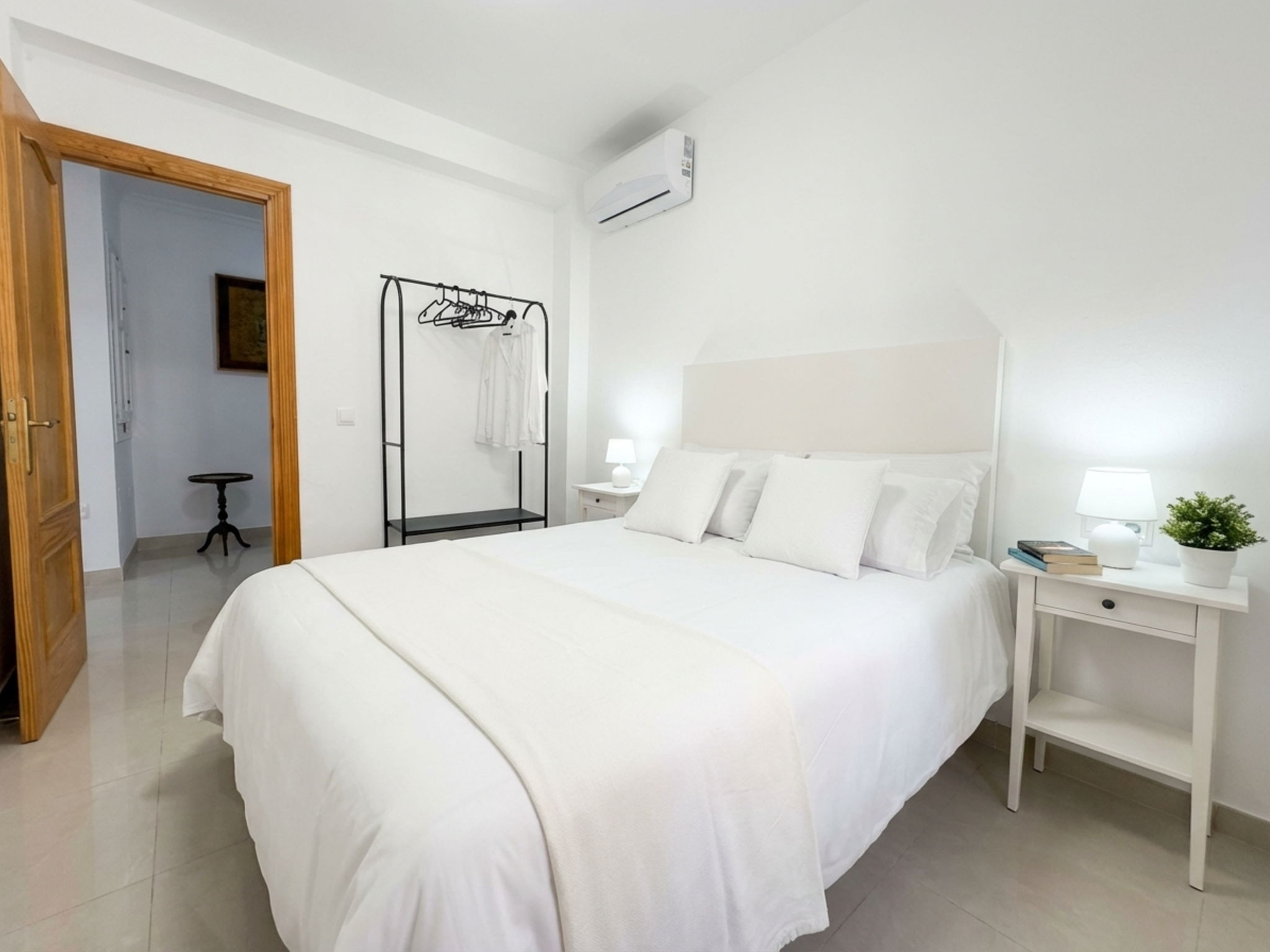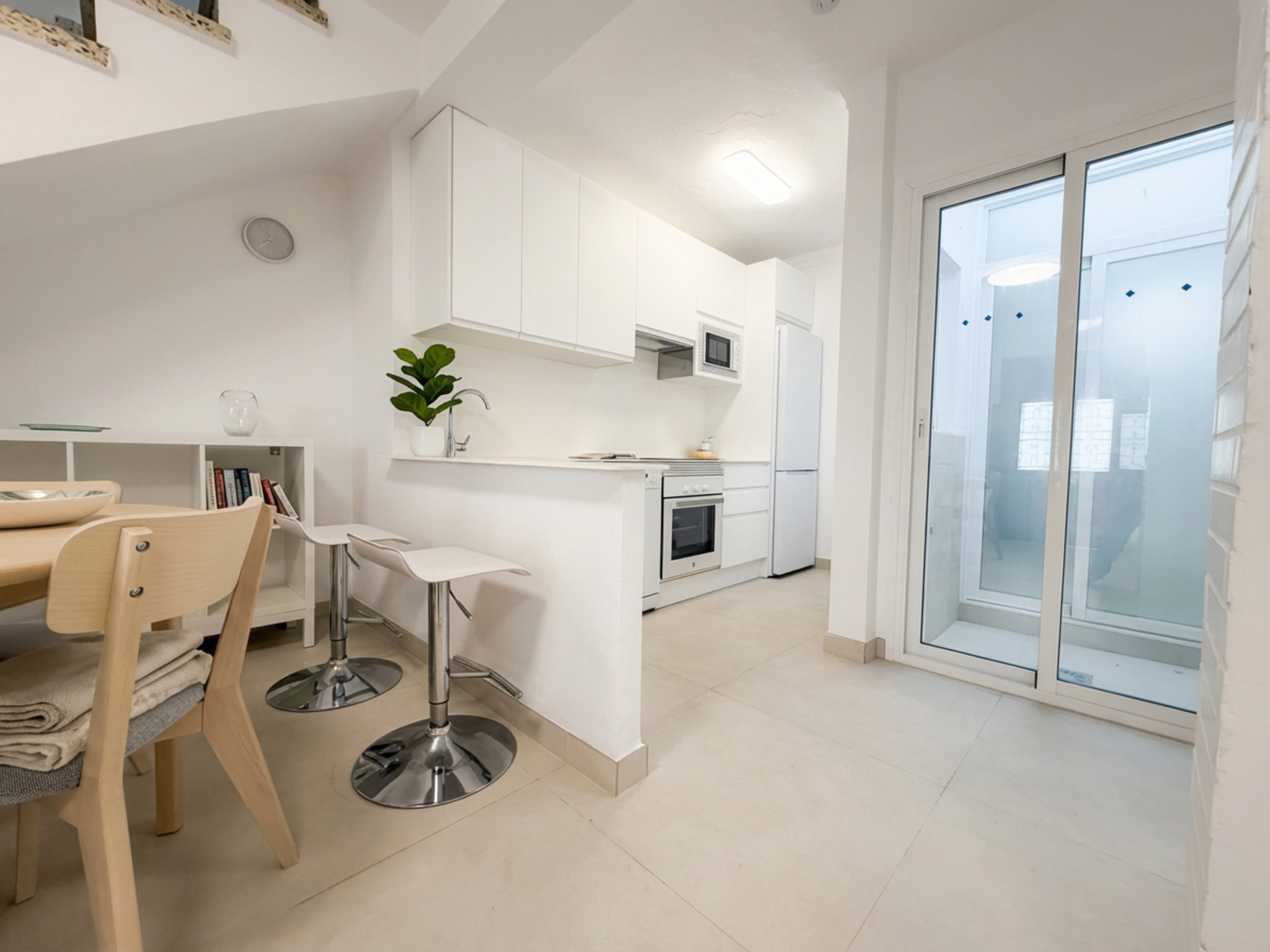 Sebbene il suo nome sia Casa Chica, i suoi soffitti alti e la sua recente ristrutturazione integrale offrono uno spazio ampio e moderno in pieno centro. Varcando la soglia, sarai accolto da una zona giorno open space con Smart TV e una cucina a vista completamente attrezzata, pensata per chi preferisce fare colazione in tranquillità prima di uscire a esplorare. Il bello è che l'esperienza inizia proprio sull'uscio di casa: ti basterà uscire e camminare meno di 10 minuti per raggiungere il Balcón de Europa o le calette più famose di Nerja, godendo della comodità di avere tutto a portata di mano senza dipendere da un veicolo.