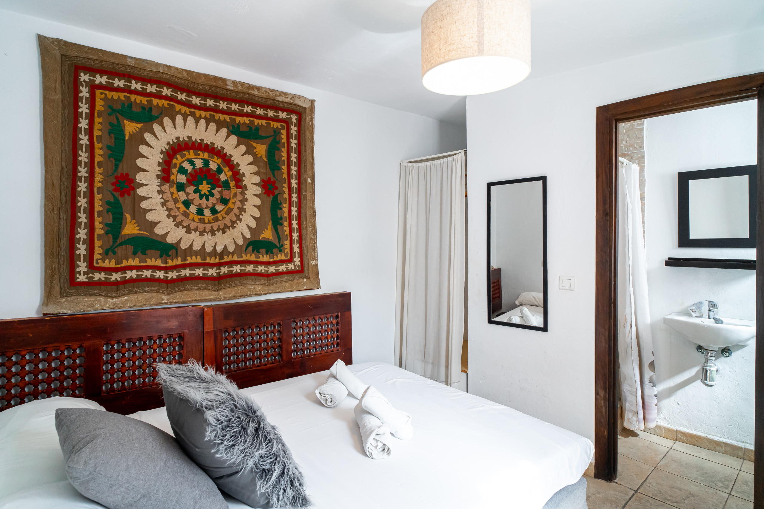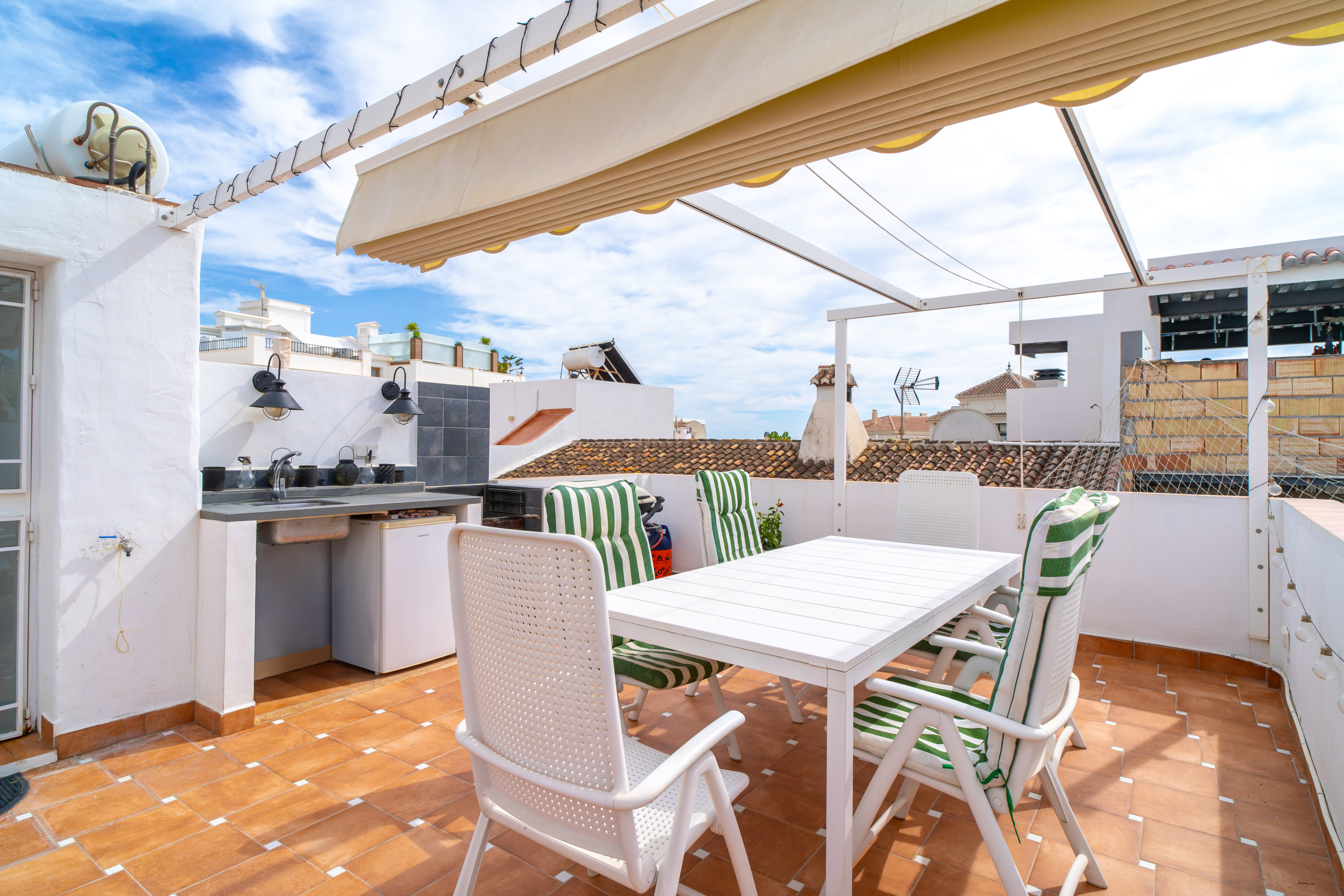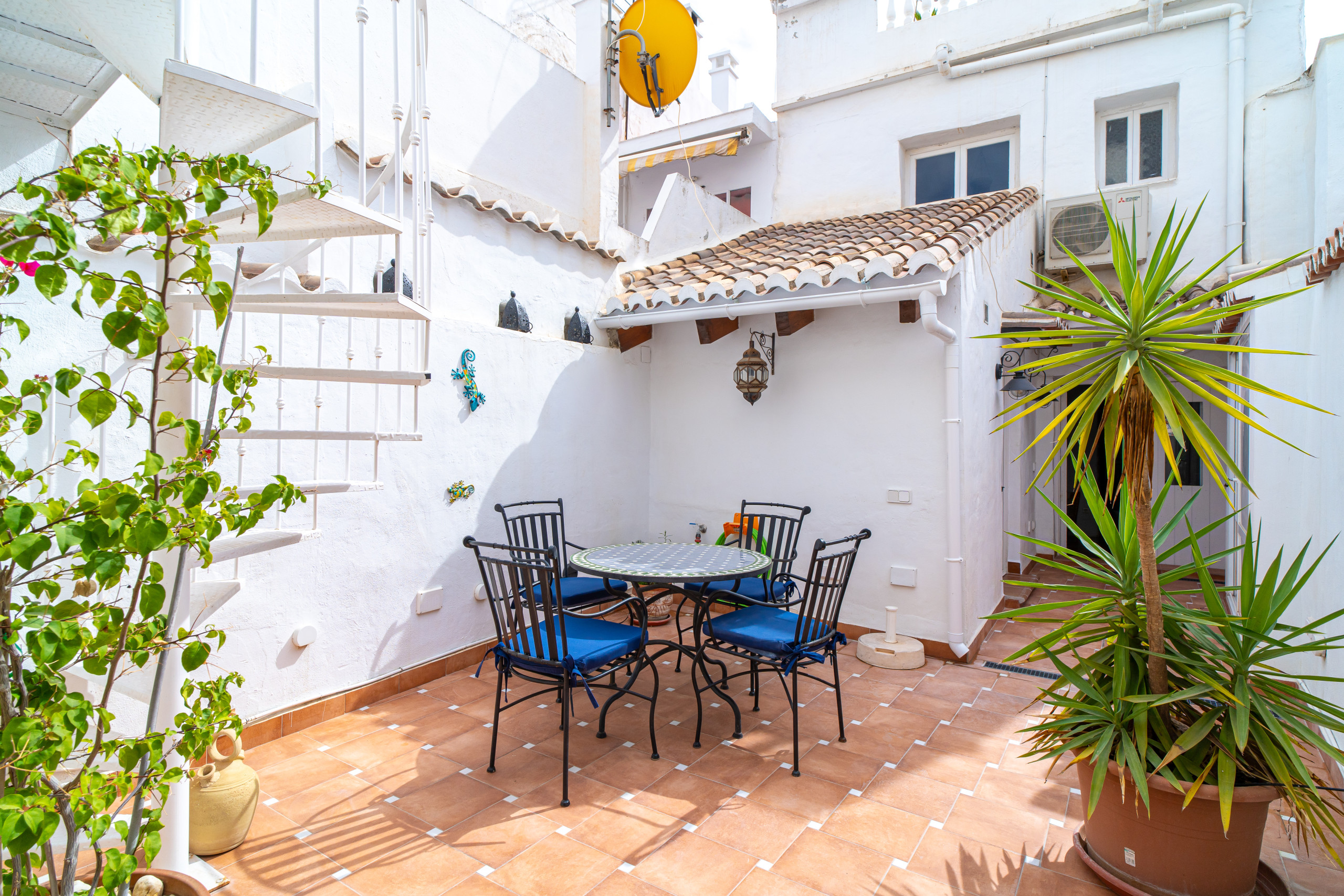 Entrando, viene accolto da una grande cucina completamente attrezzata, accanto ad un accogliente soggiorno con TV internazionale e internet ad alta velocità. Sempre al piano terra, troverà una camera da letto principale con letto matrimoniale, che si collega a un bellissimo patio andaluso. Dall'altra parte del cortile, una camera da letto separata con bagno privato garantisce la massima privacy, ideale per coppie o compagni che desiderano i propri spazi. Sopra questa camera, una piccola terrazza con divano chill-out diventa il luogo perfetto per rilassarsi, accessibile tramite una scala a chiocciola.
