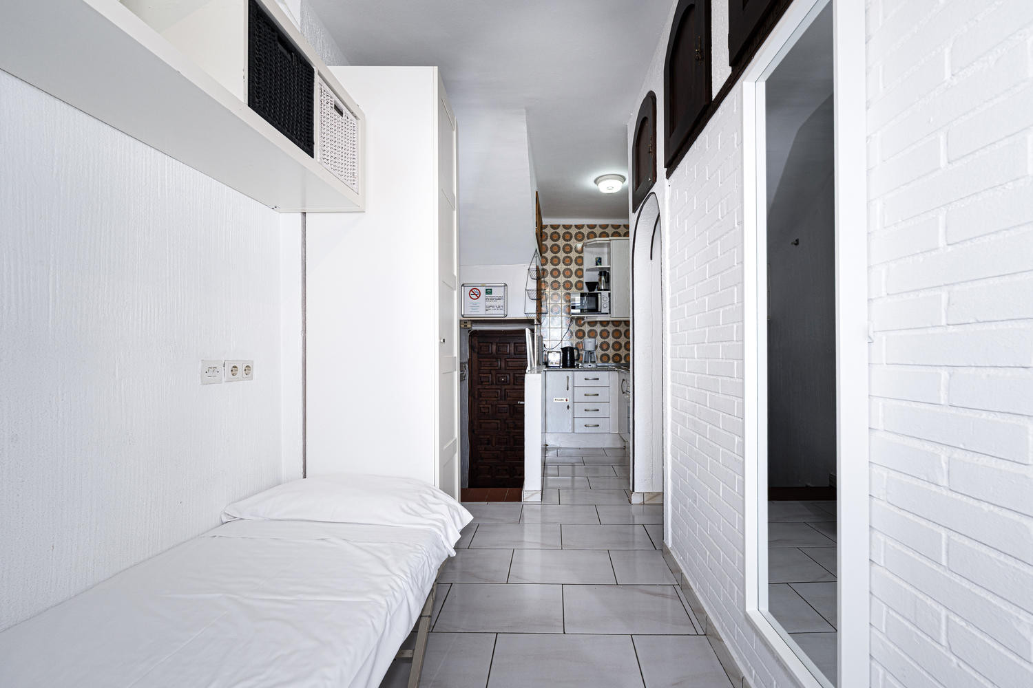 El estudio está muy bien aprovechado con 3 camas, y muy bien acondicionado. Las instalaciones del edificio, entre ellas, la piscina, son estupendas.